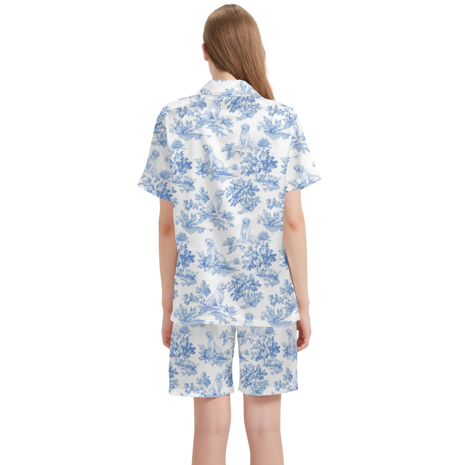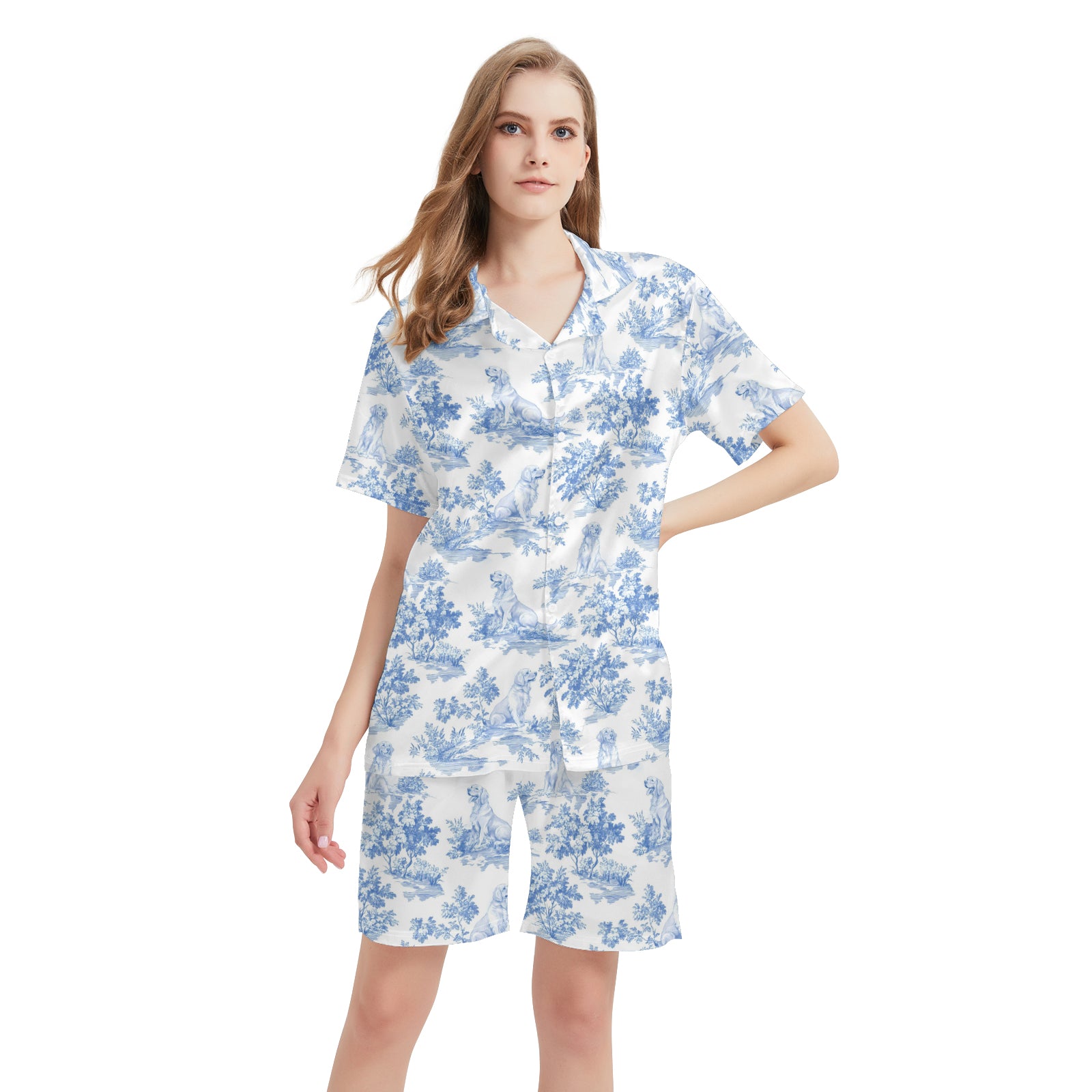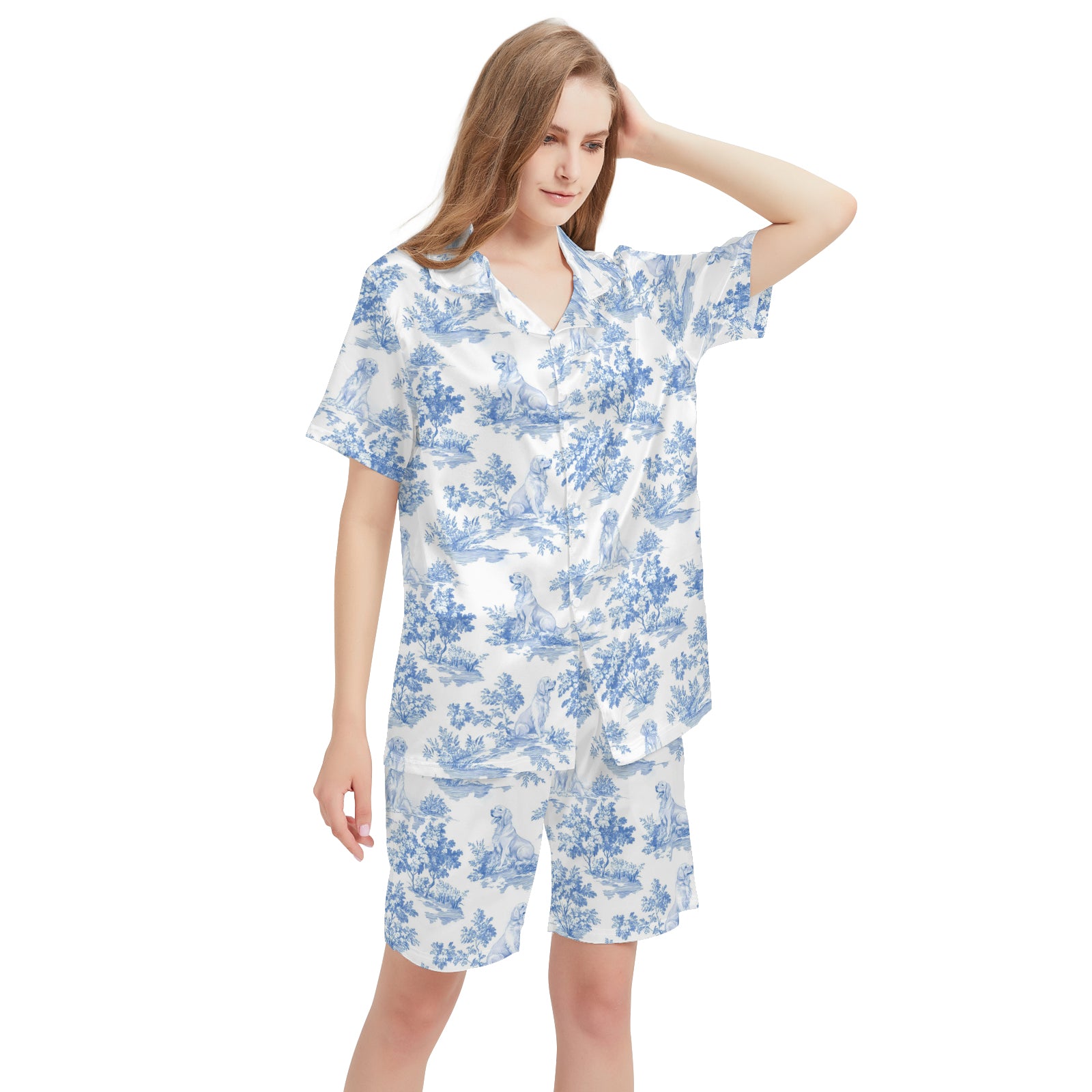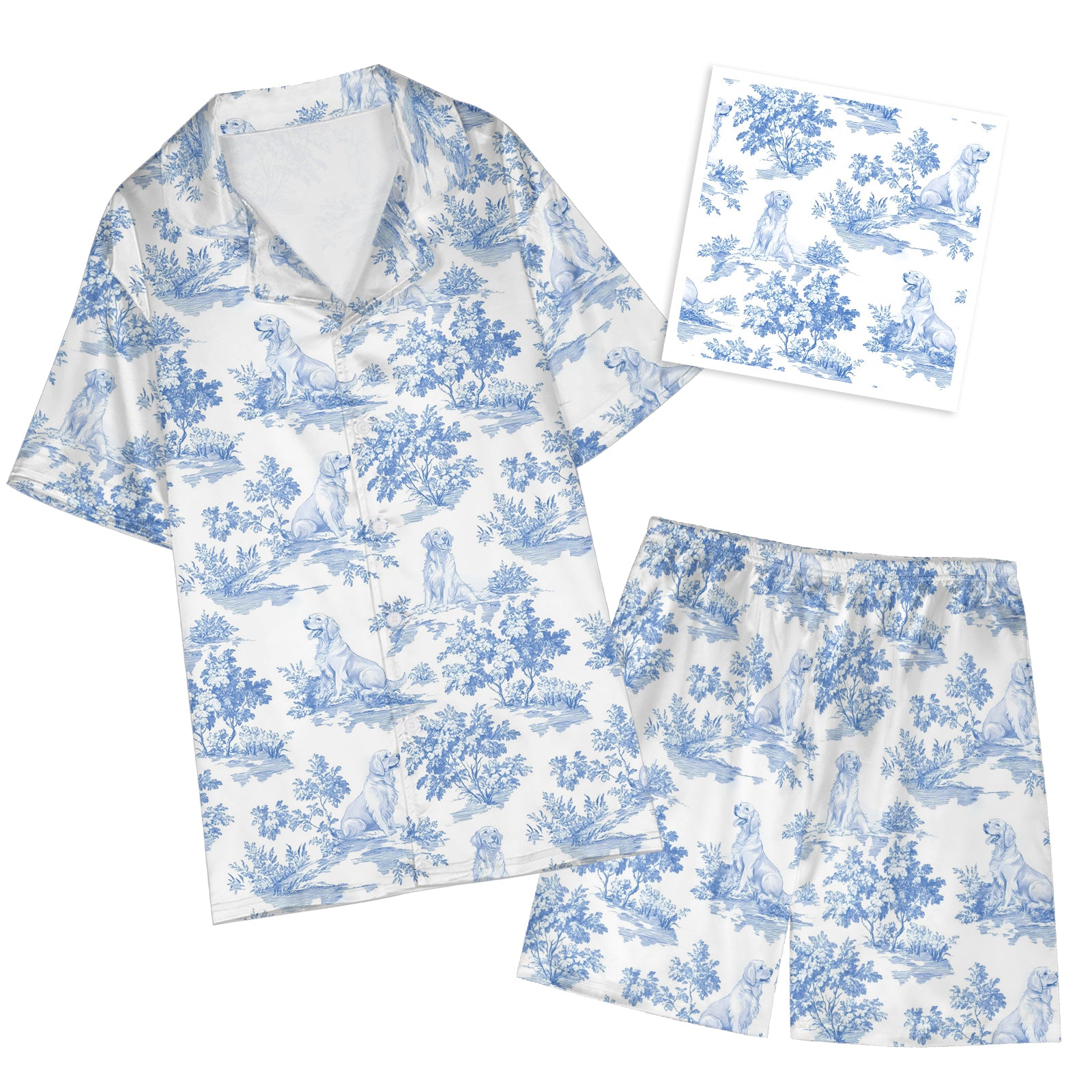 Golden Retriever Dog Blue Satin Pajama Set For Women