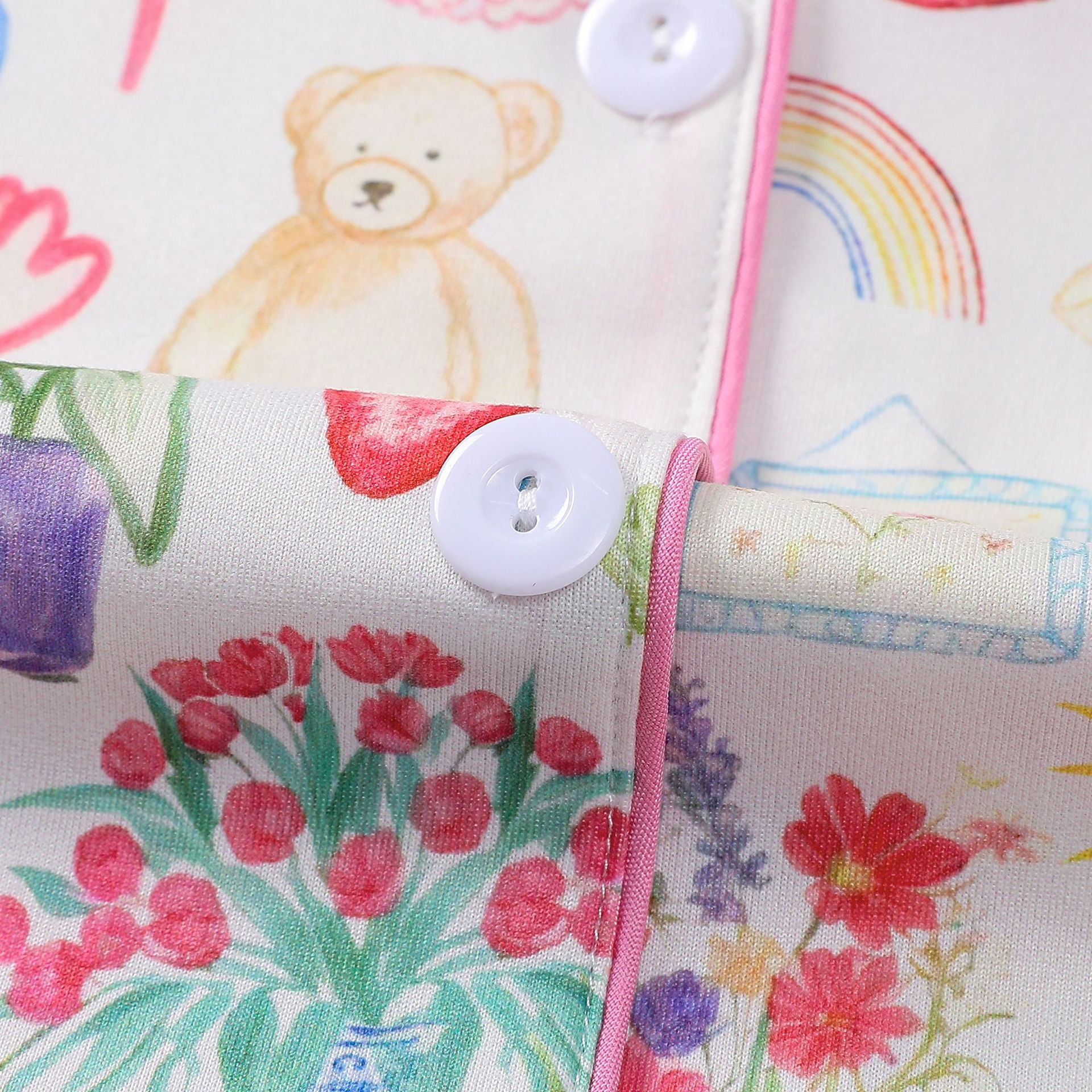 Flower Garden Bow Ribbed Knit Pajama Set For Women