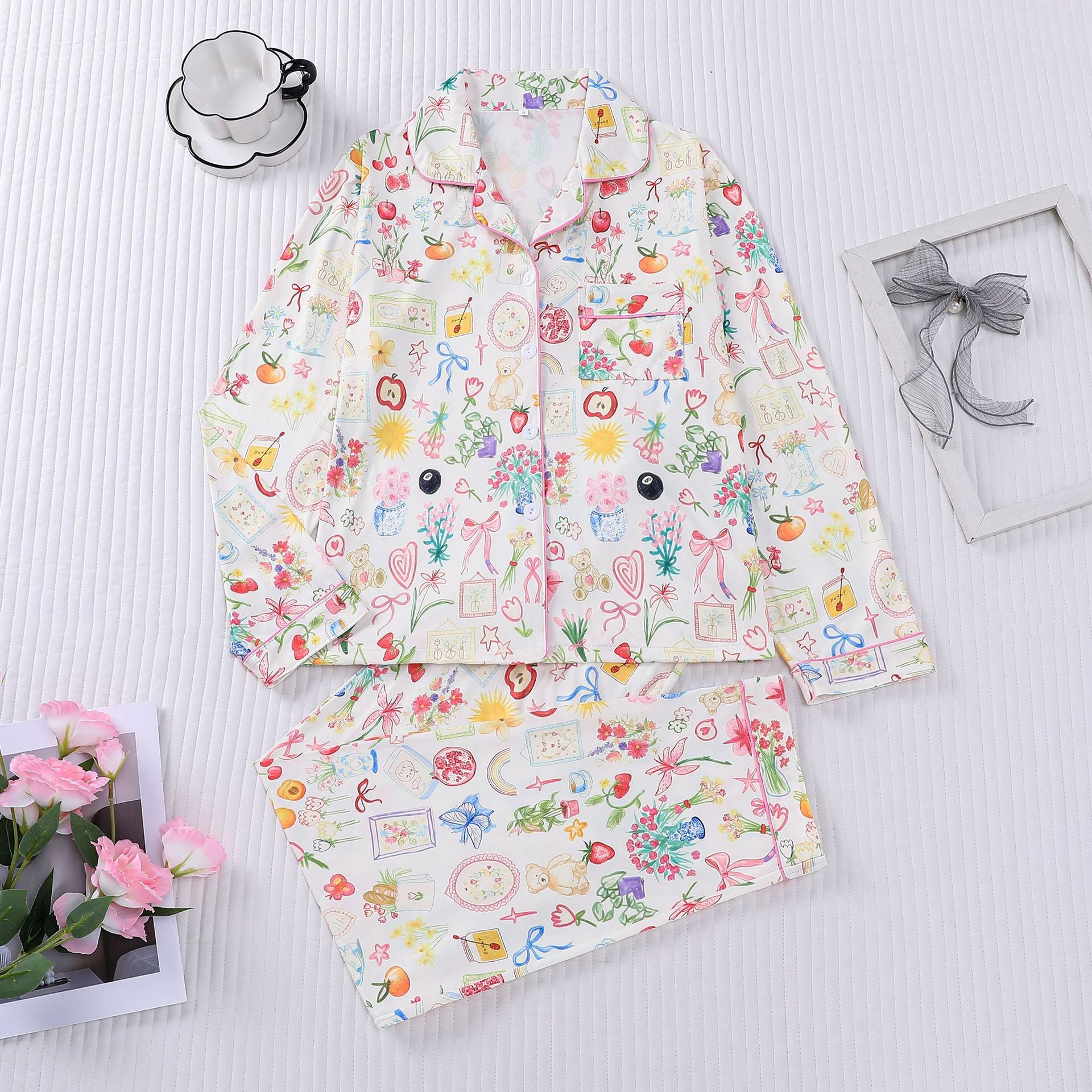 Fruits Garden Bow Ribbed Knit Pajama Set For Women