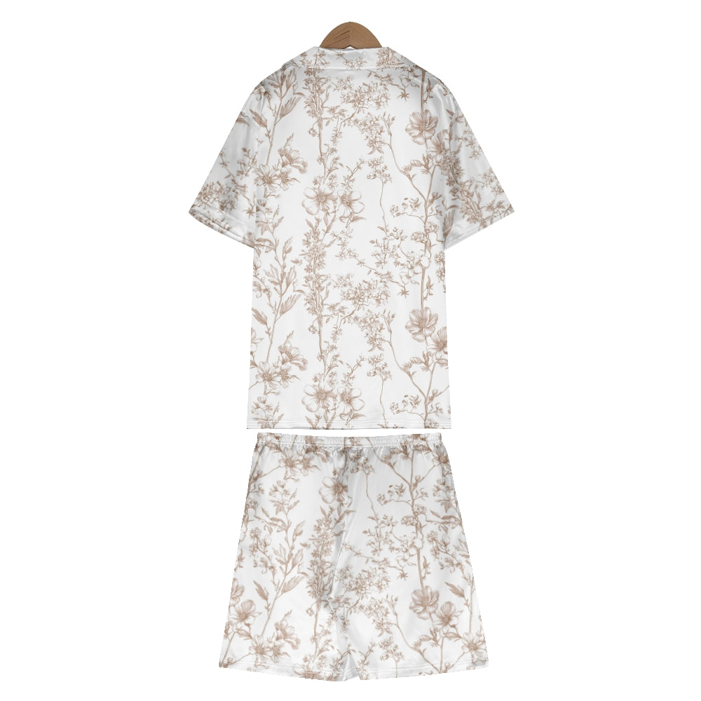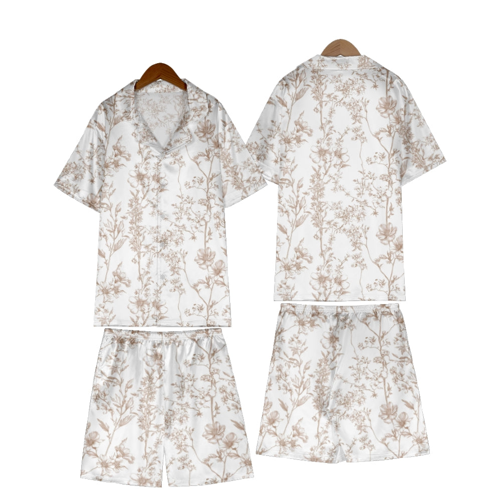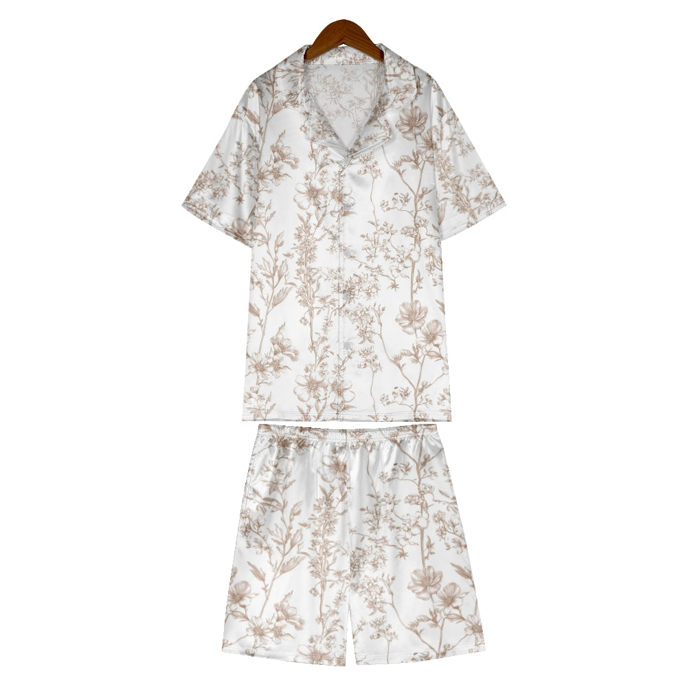 Chinoiserie Wildflower Toile De Jouy Satin Pajama Set For Women