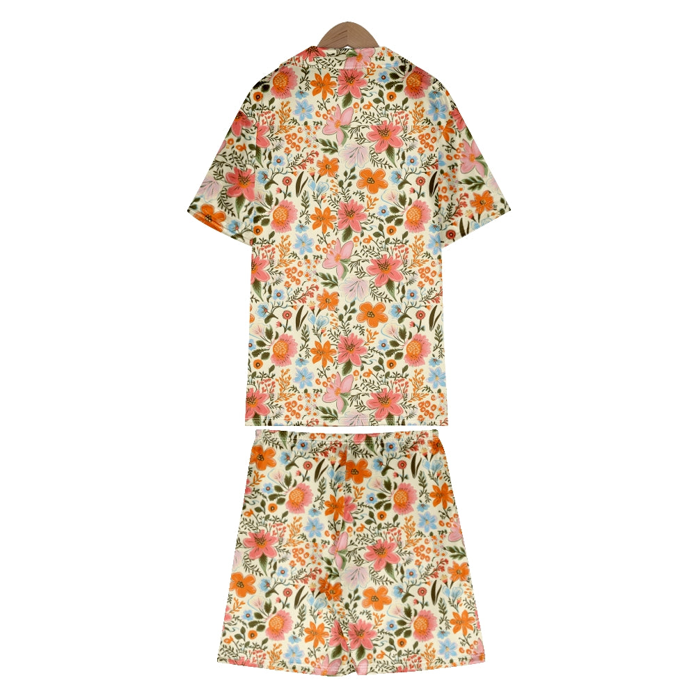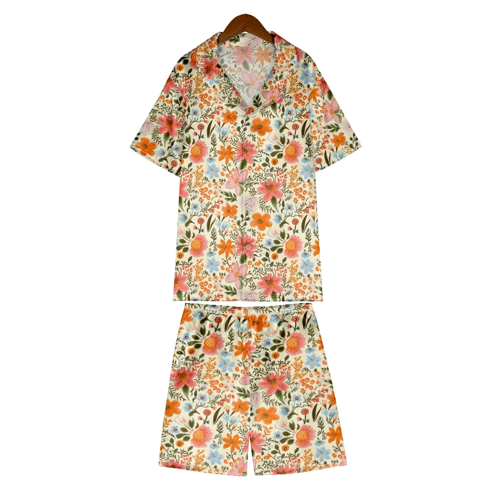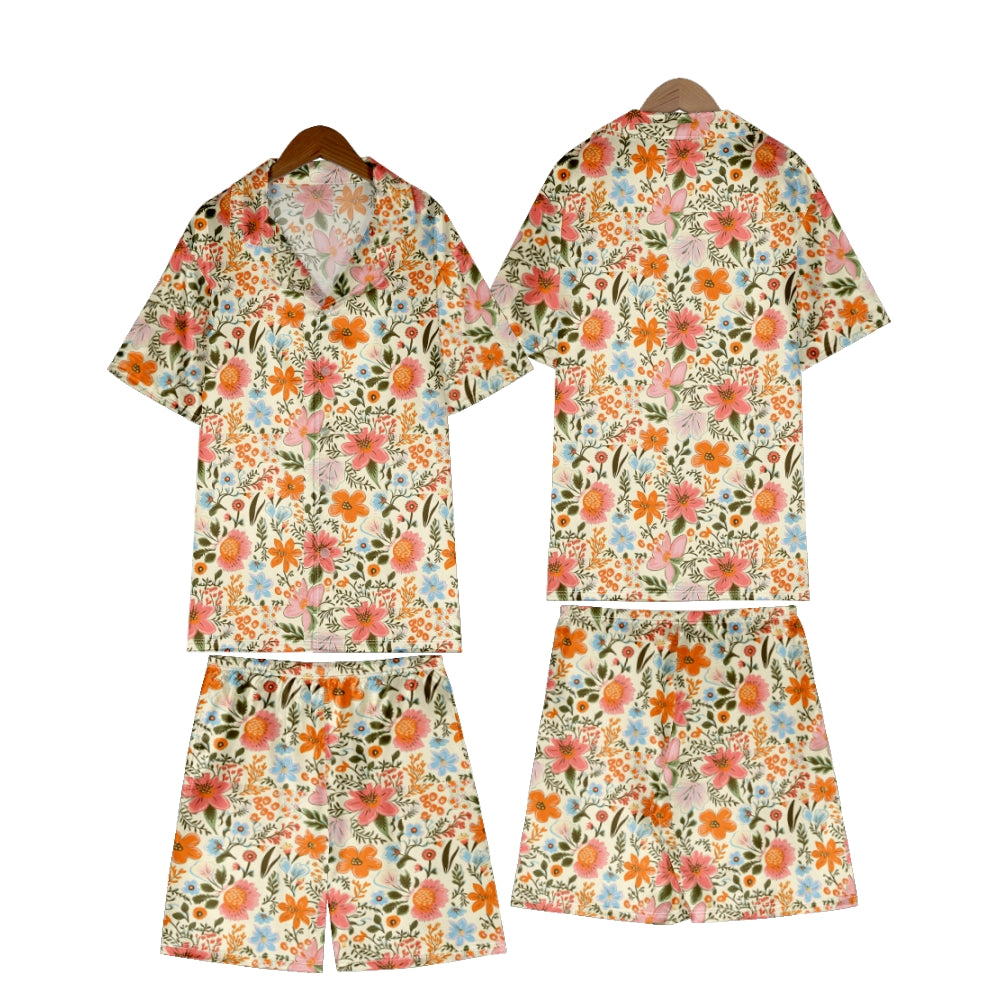 Mother’s Day Gift Orange Floral Satin Pajama Set For Women