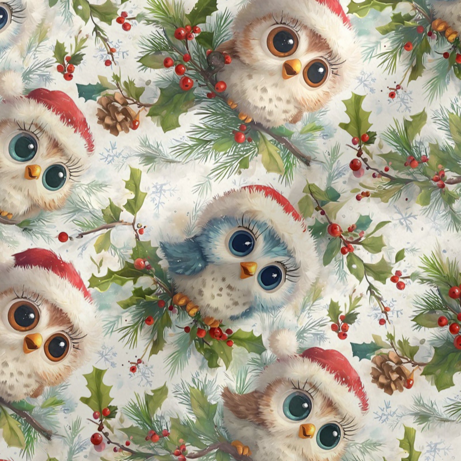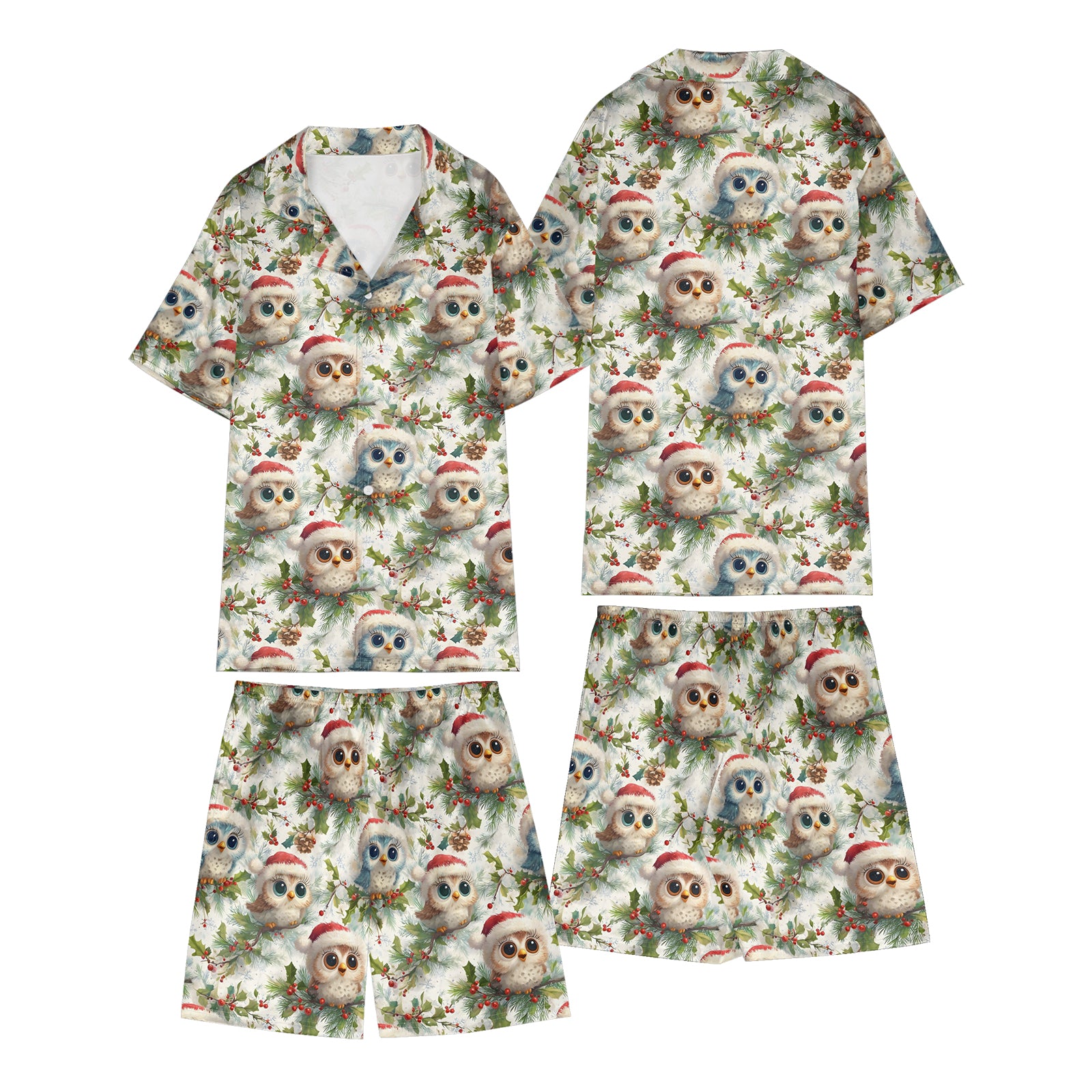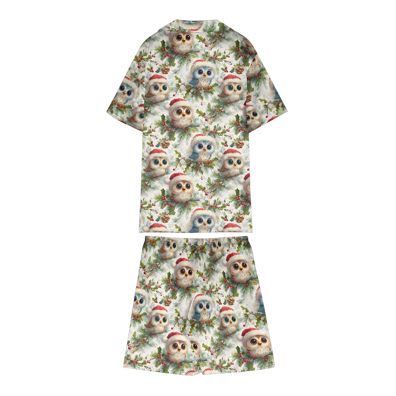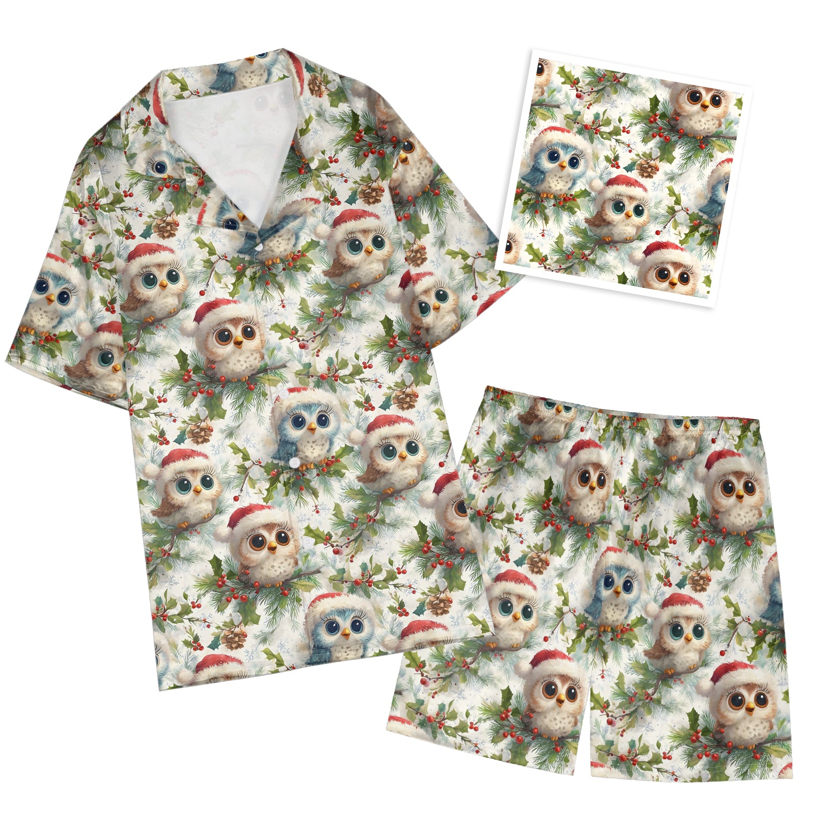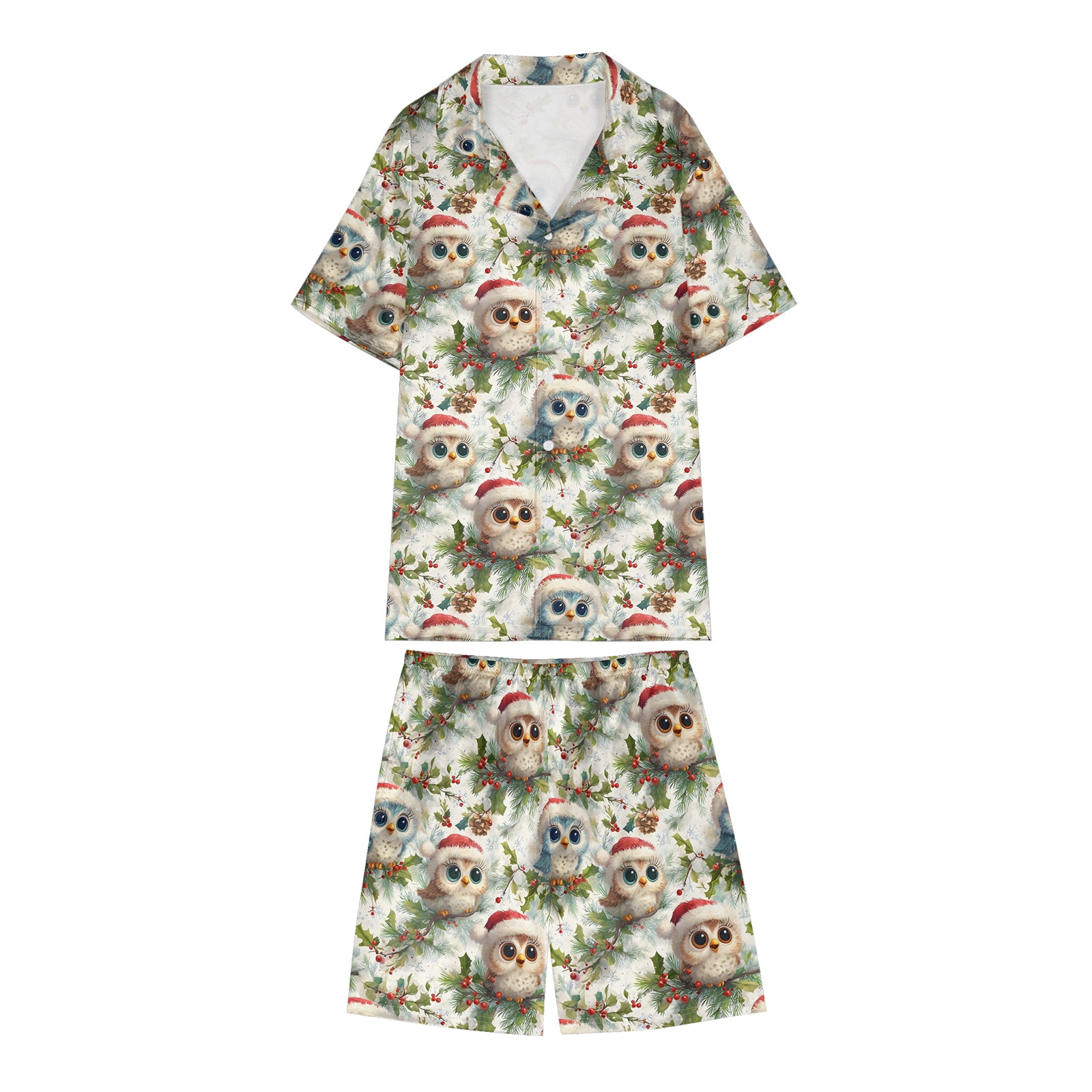 3D Printed The Owl in a Santa Hat Santa Satin Pajama Set For Women