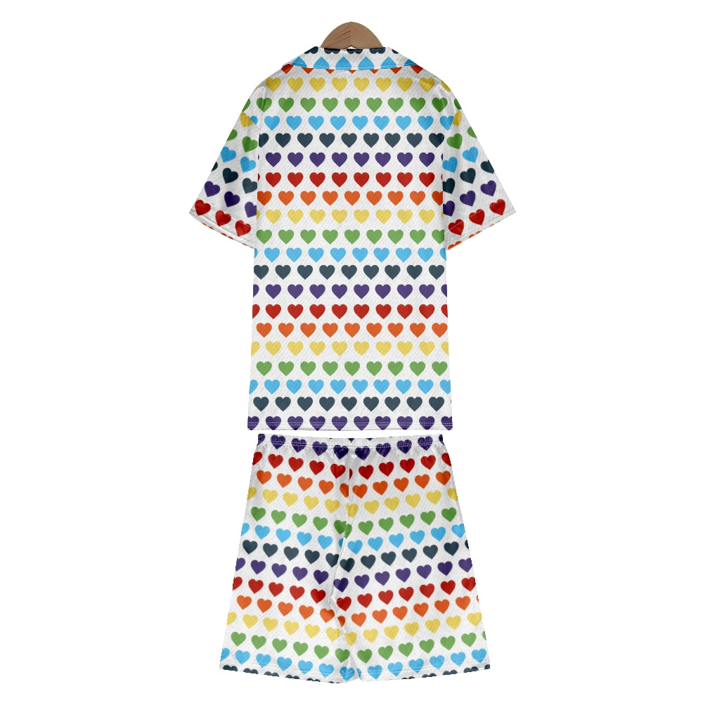 Cute Rainbow Hearts Satin Pajama Set For Women