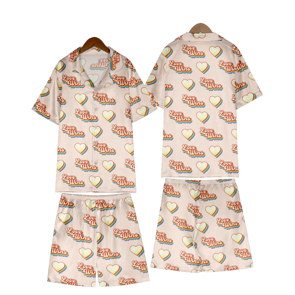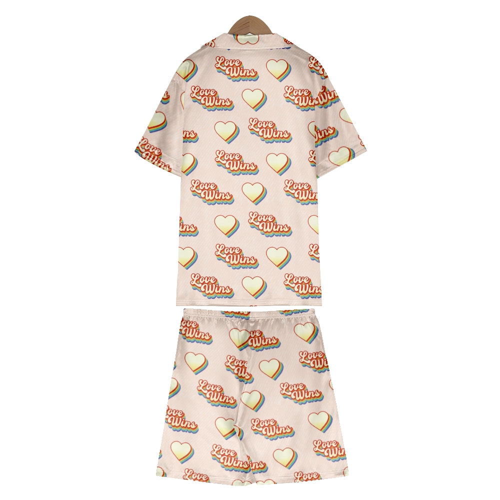 Love Wins Hearts Satin Pajama Set For Women