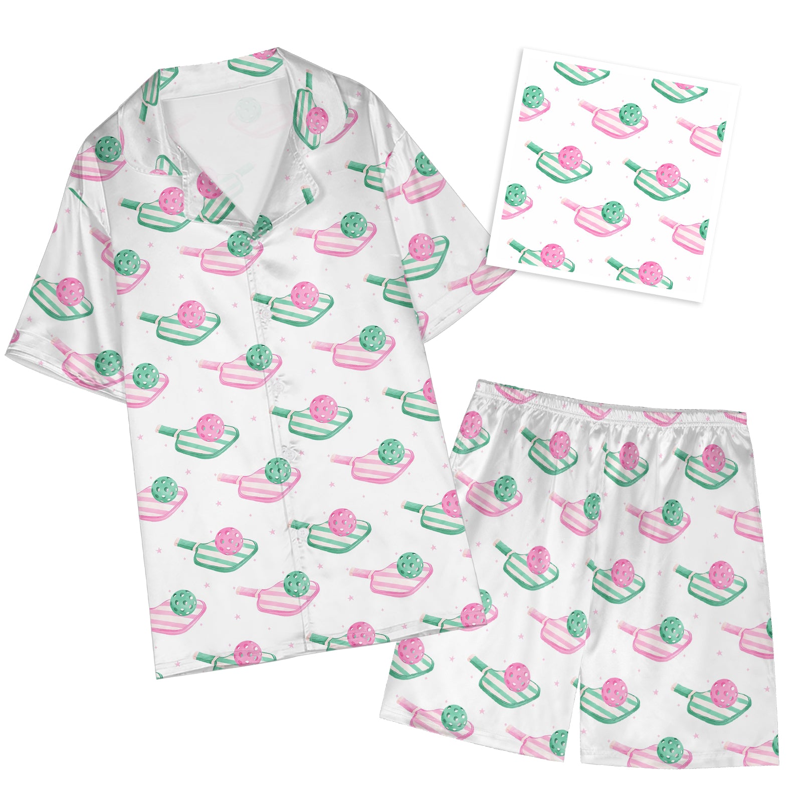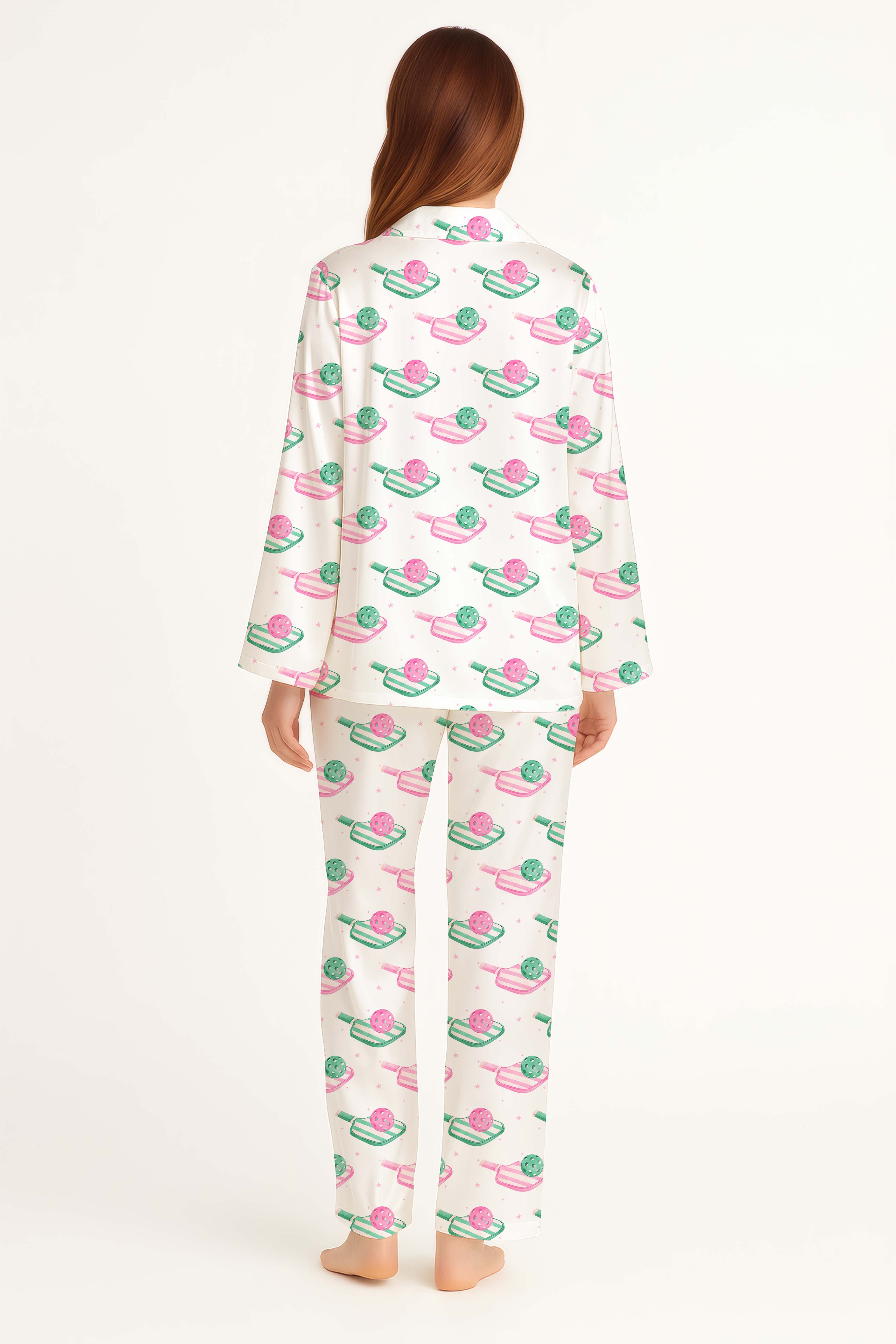 Preppy Pickleball Paddles Satin Pajama Long Set For Women