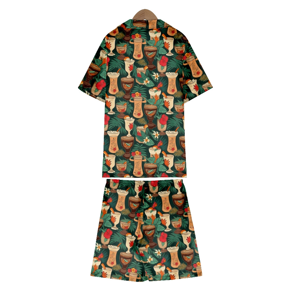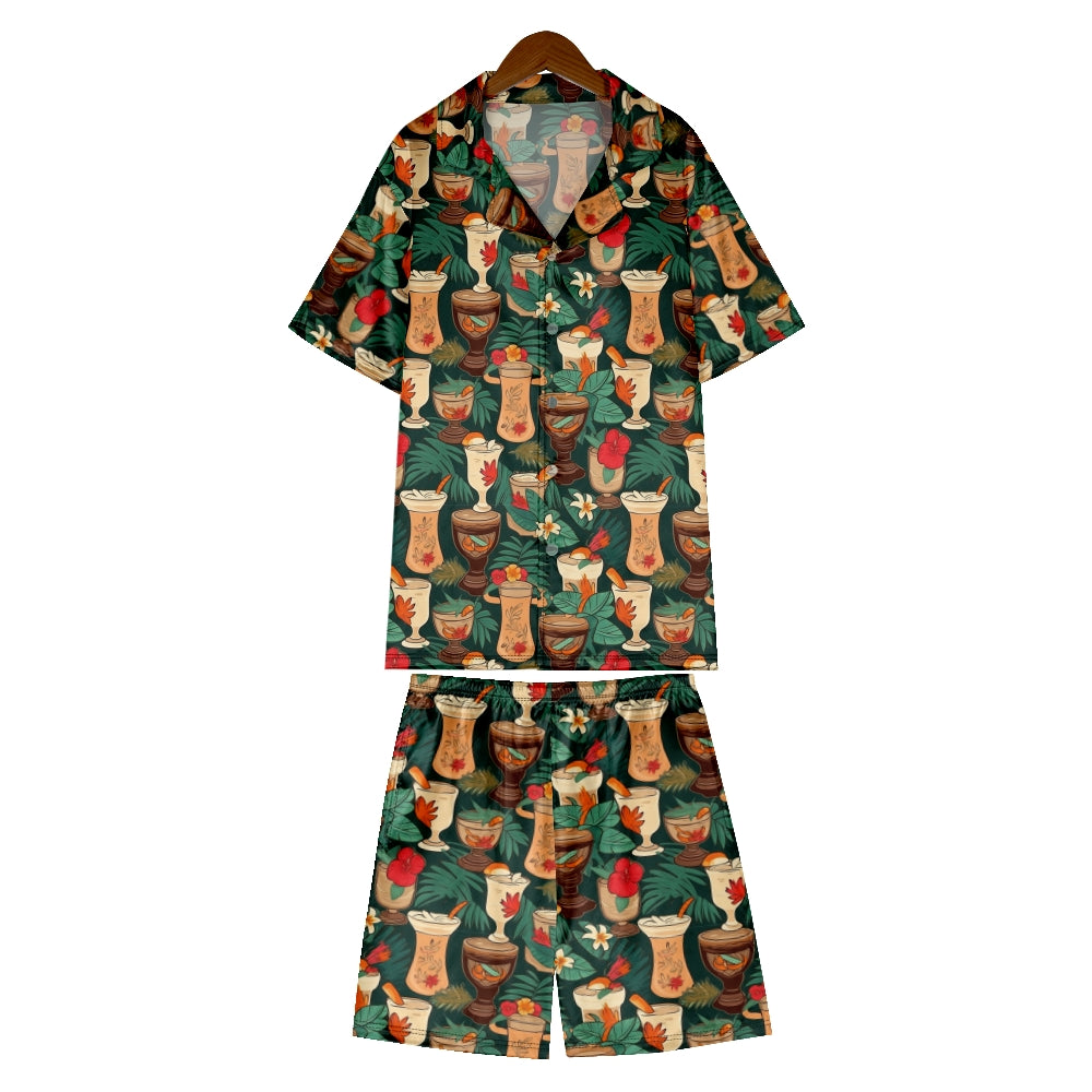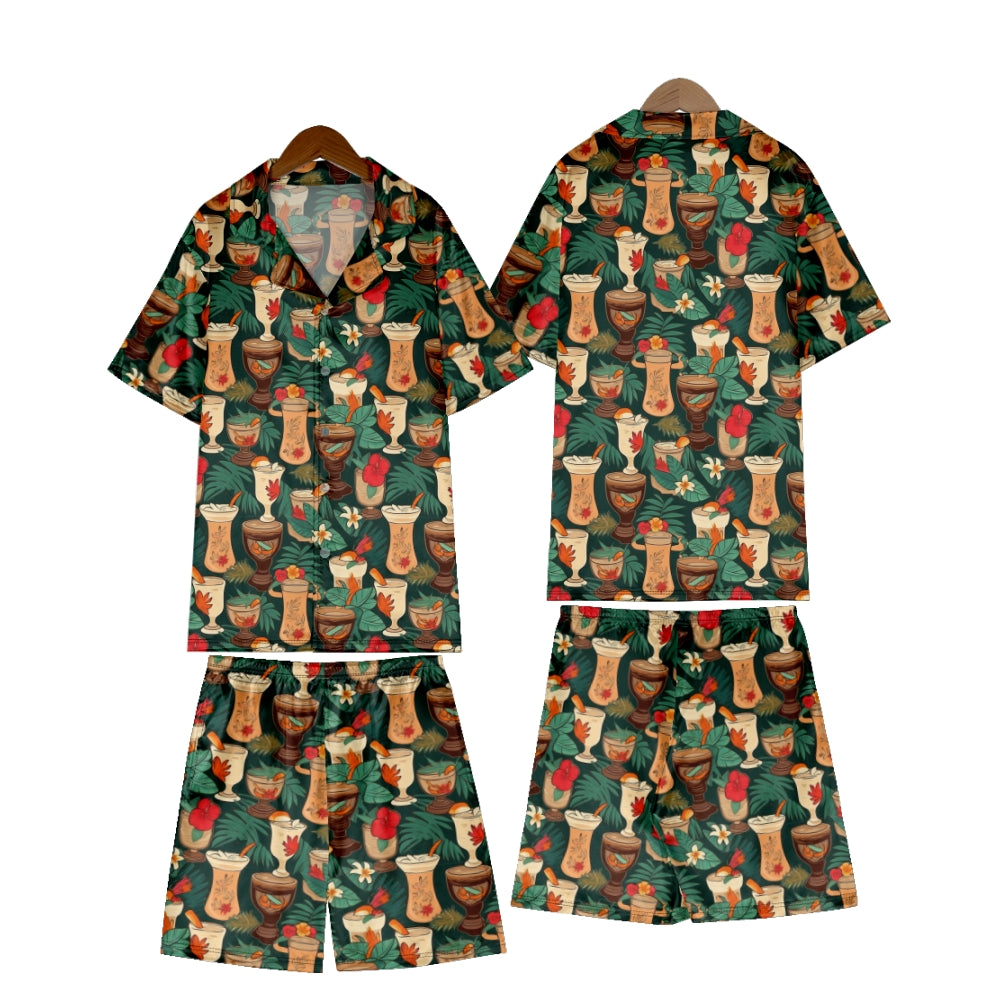 Tropical Rainforest Cocktails Satin Pajama Set For Women