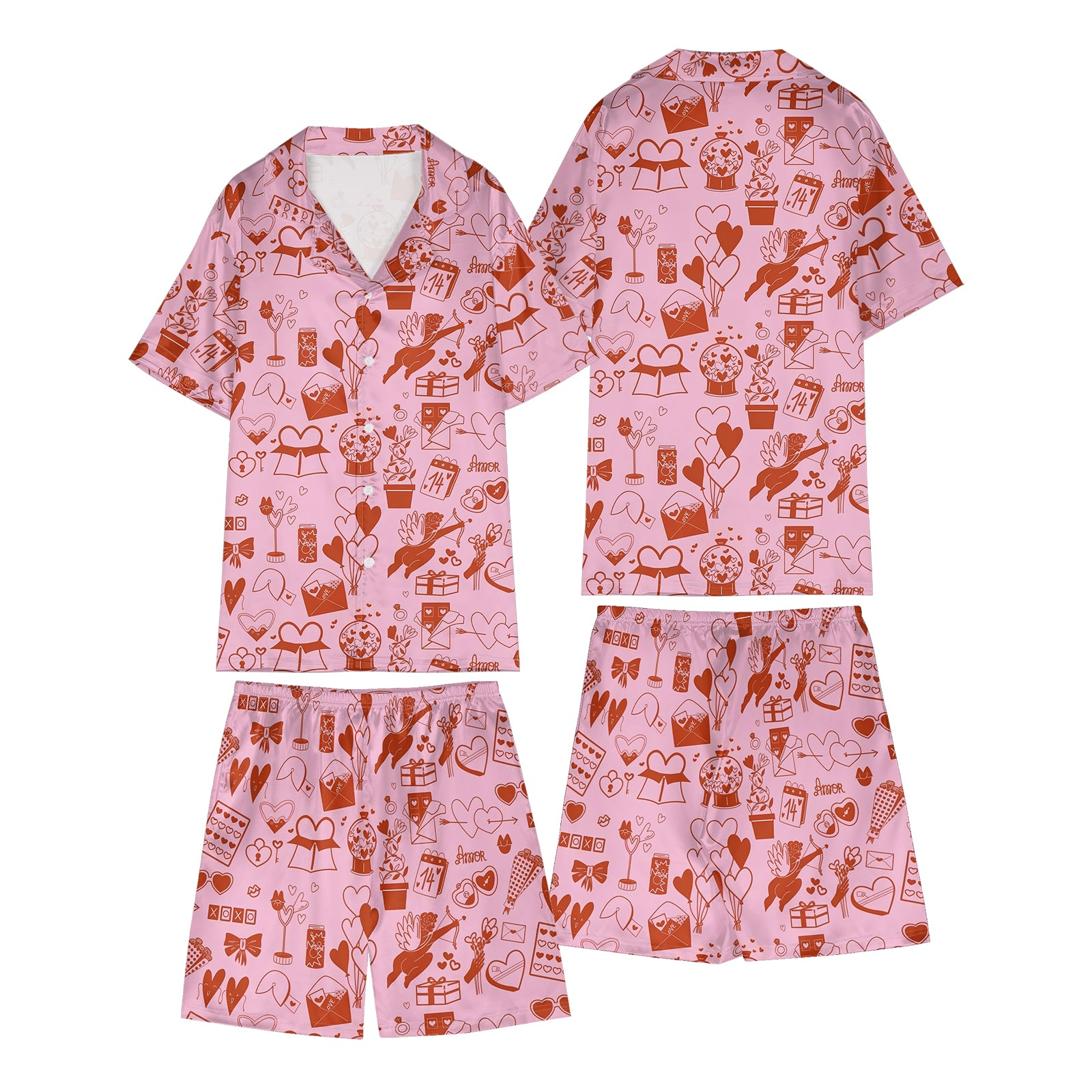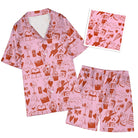 Valentine’s Day Cupid Line Pink Satin Pajama Set For Women