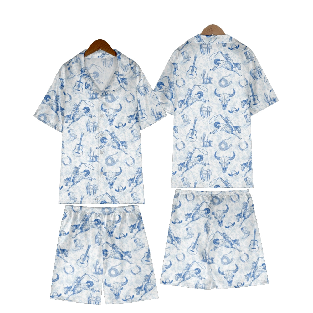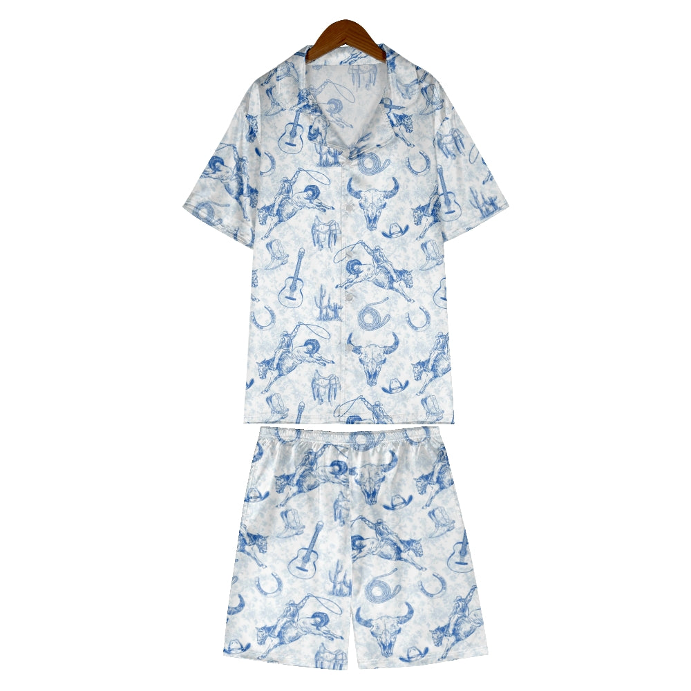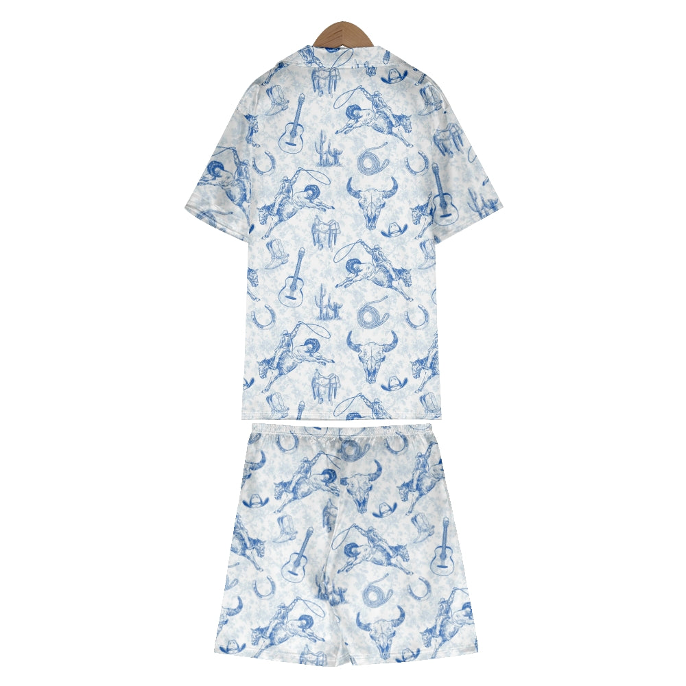 Blue Coastal Cowgirl Satin Pajama Set For Women