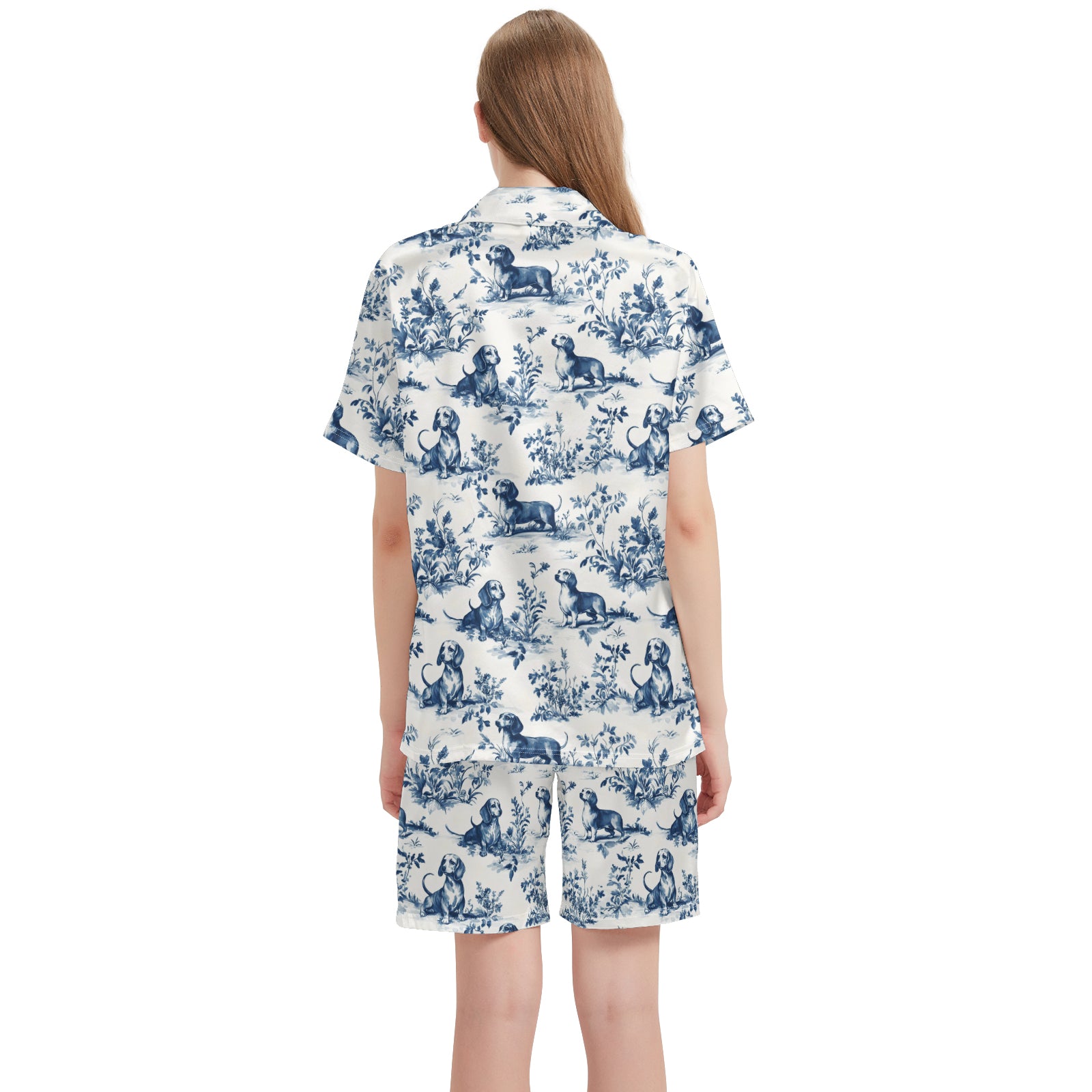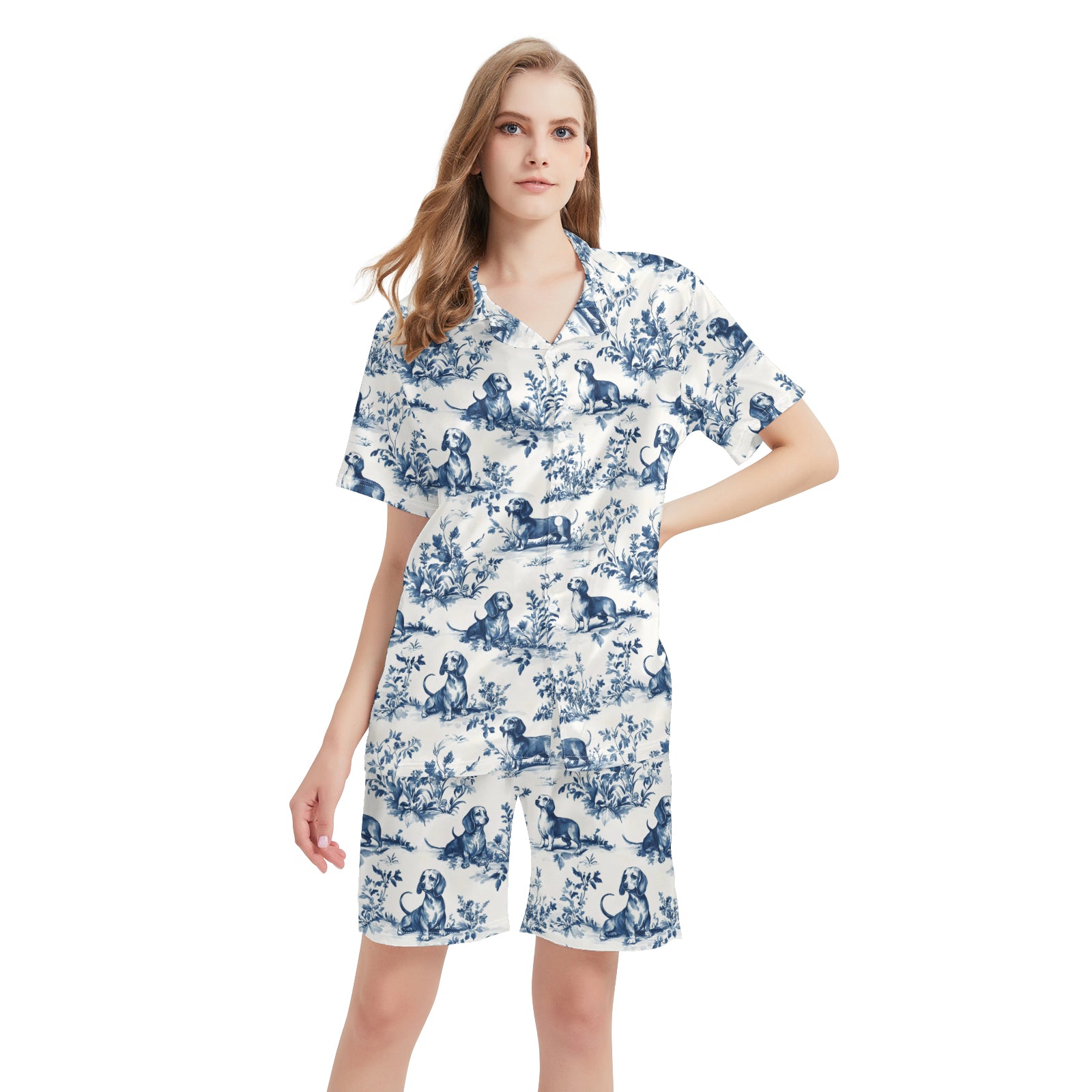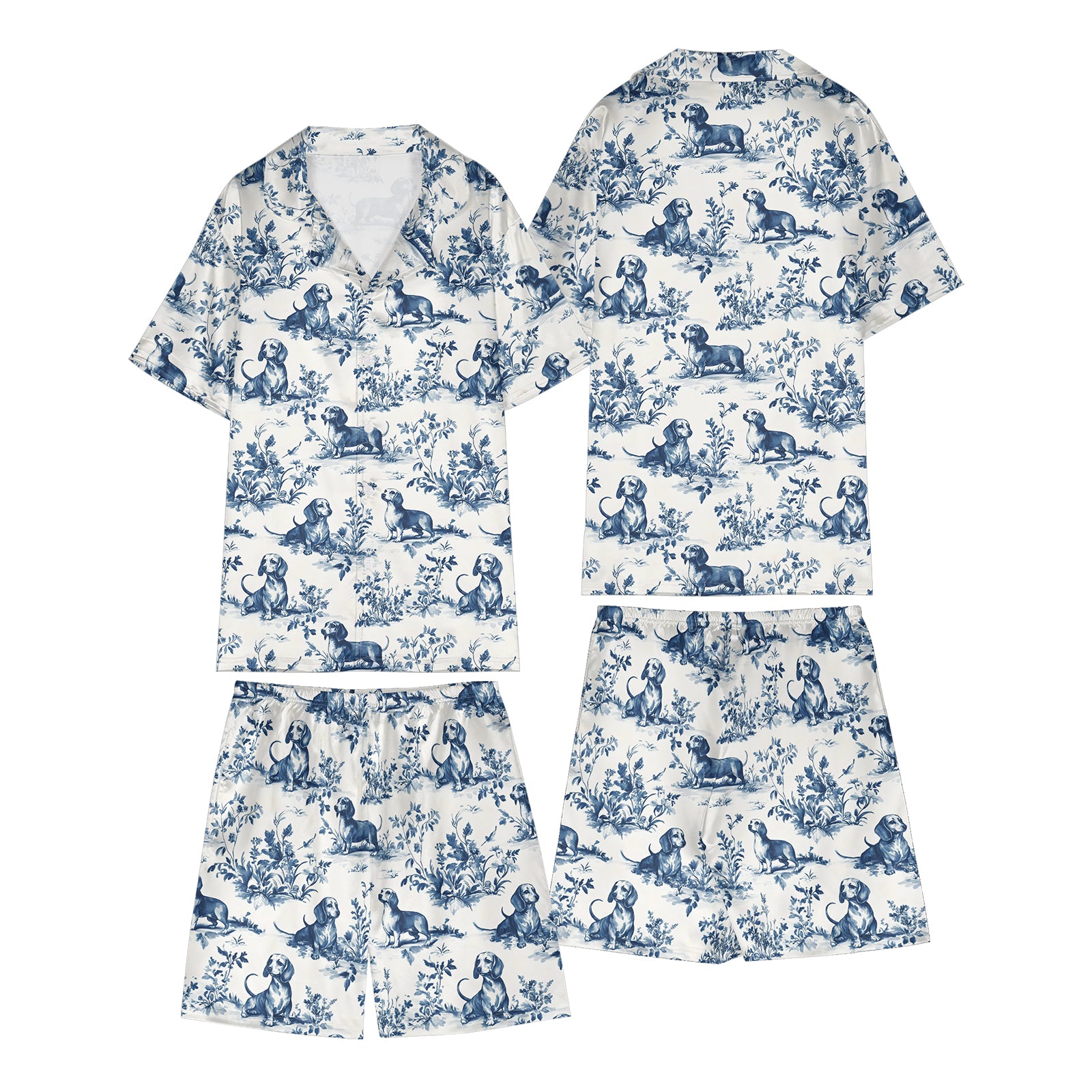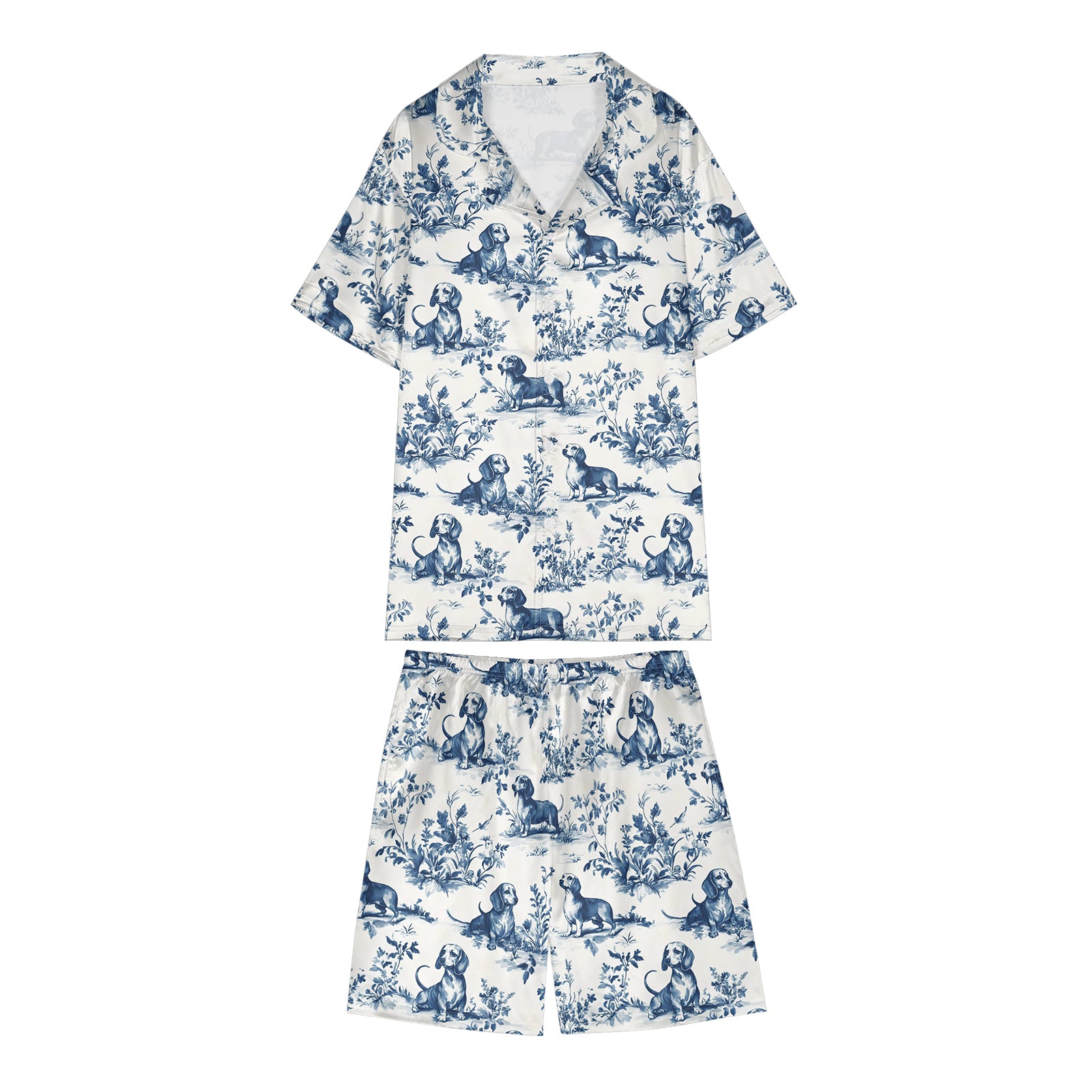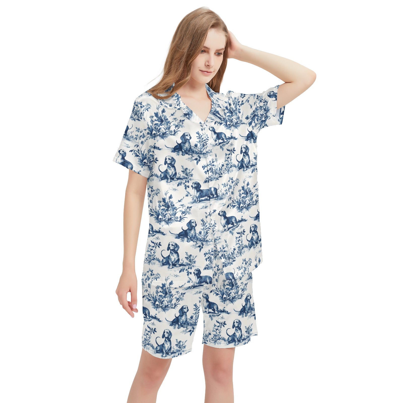 Dachshund Toile De Jouy Satin Pajama Set For Women