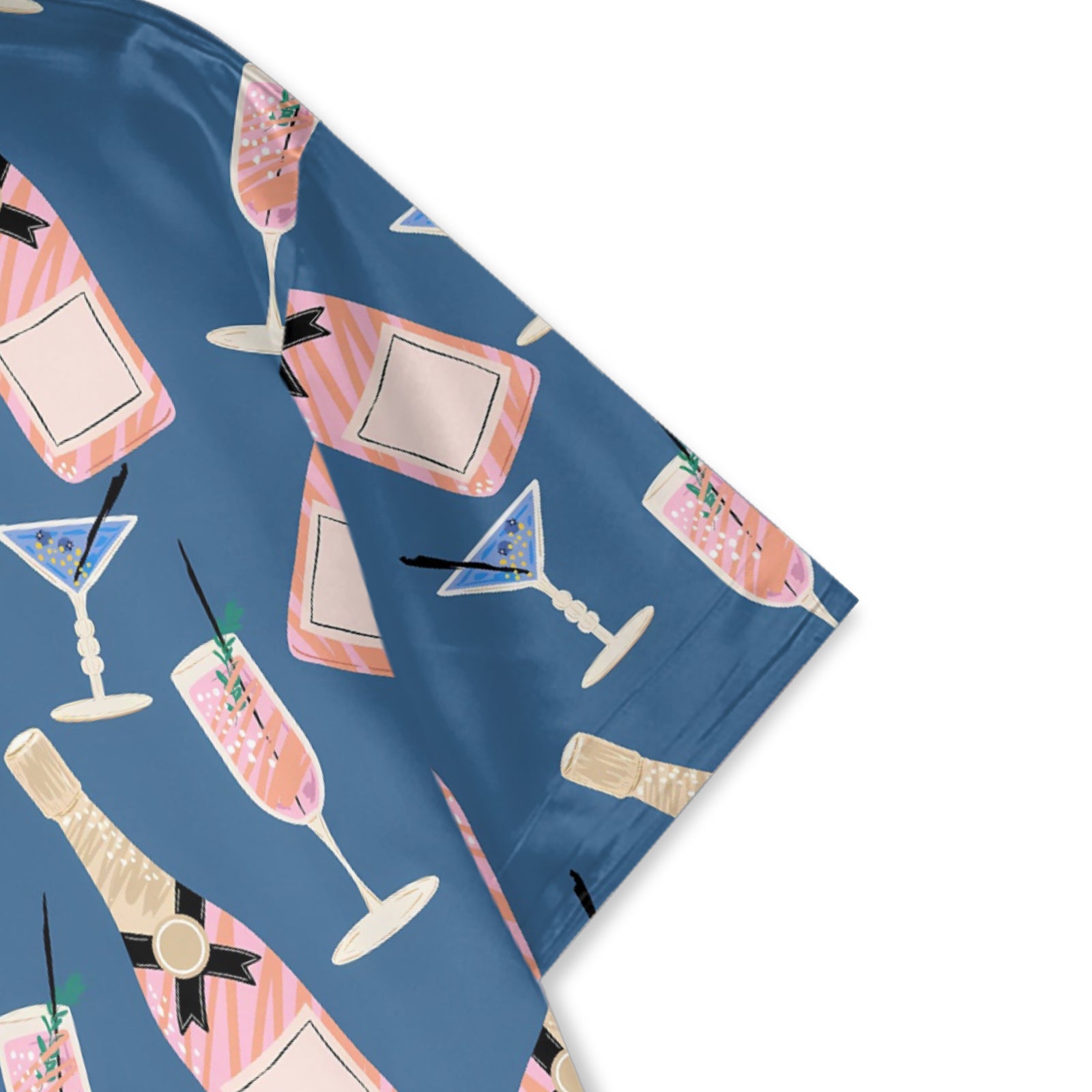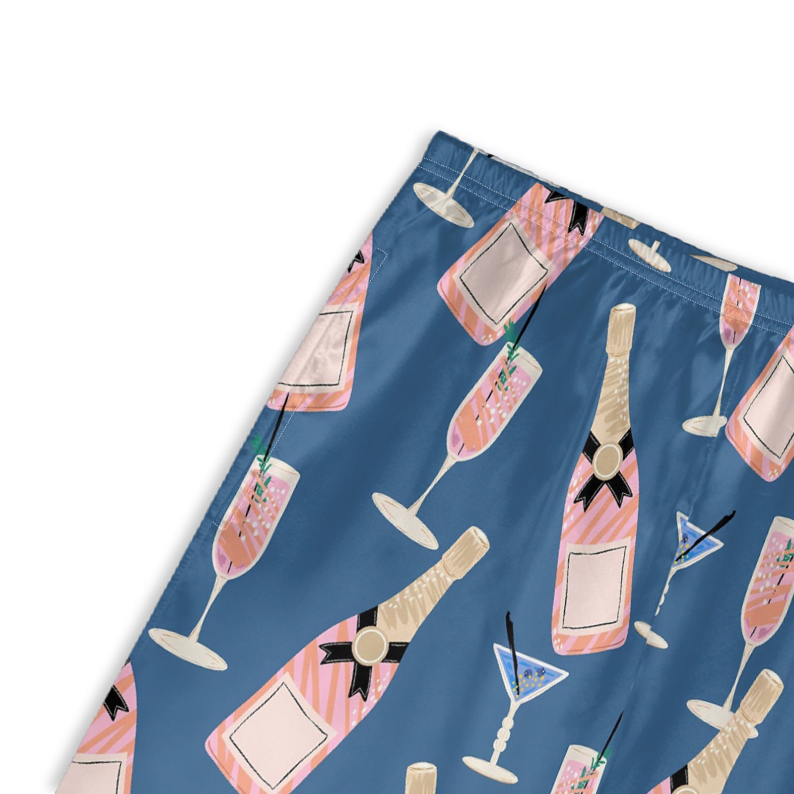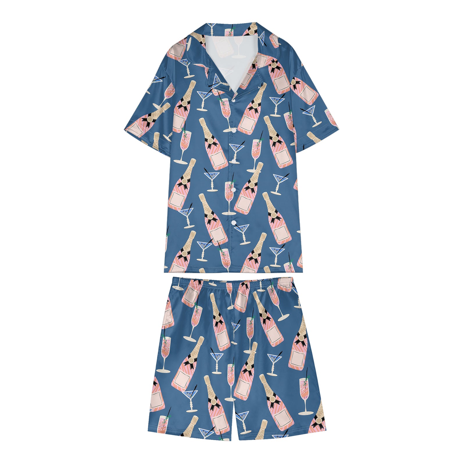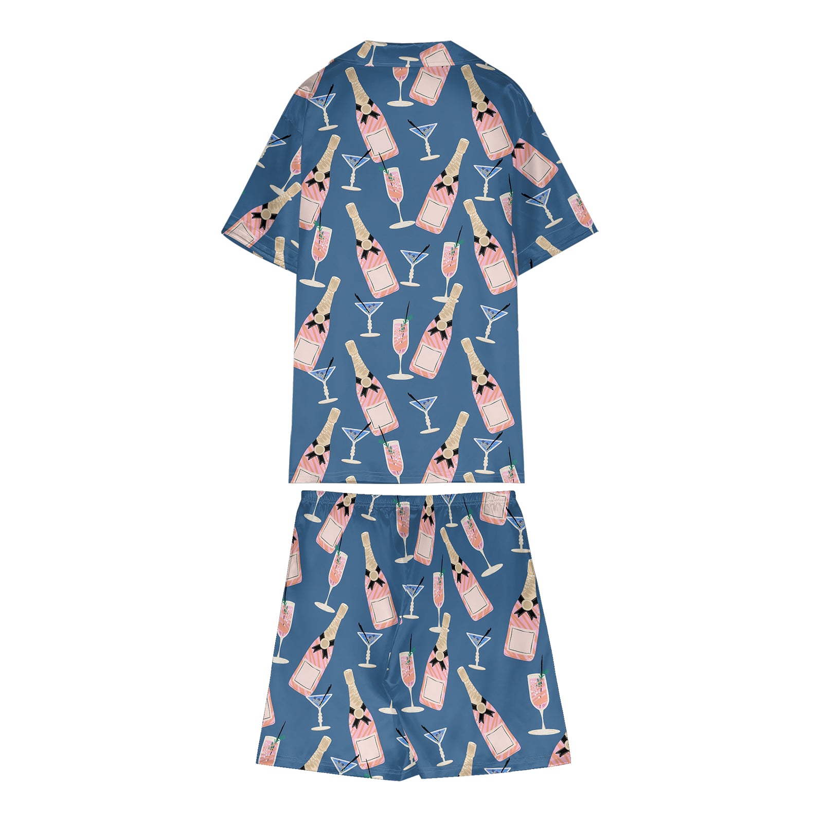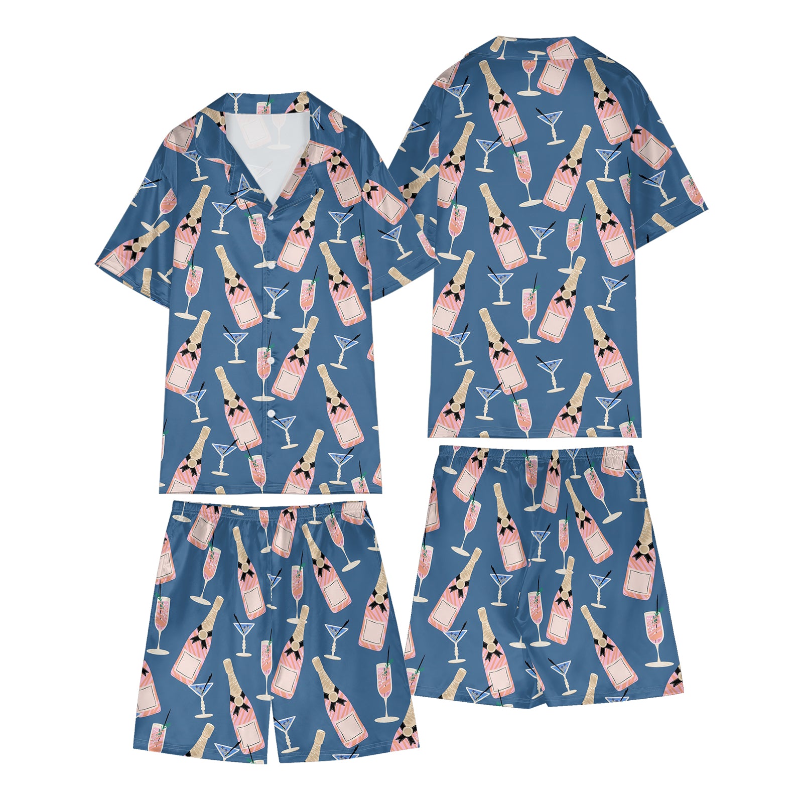 Wine Bottles and Champagne Satin Pajama Set For Women